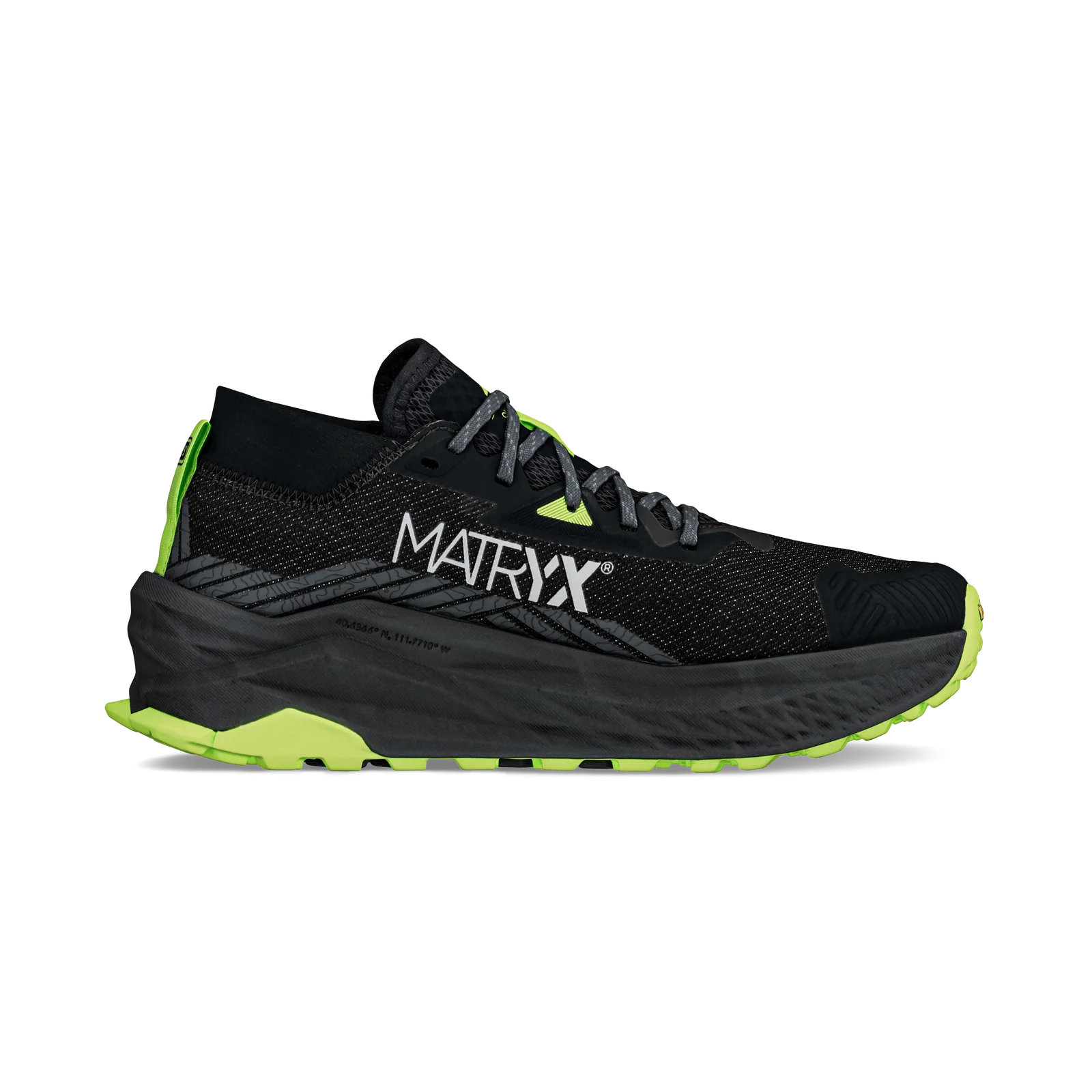 Den uppdaterade konstruktionen kombinerar låg vikt med robust skydd. Ovandelen i MATRYX® ger en slitstark och lätt struktur, samtidigt som den håller foten stabil även på ojämnt underlag. Den integrerade “Scree Sleeve” hjälper till att hålla smuts och grus borta, vilket gör skon till ett pålitligt val även under längre pass i tuff miljö.
