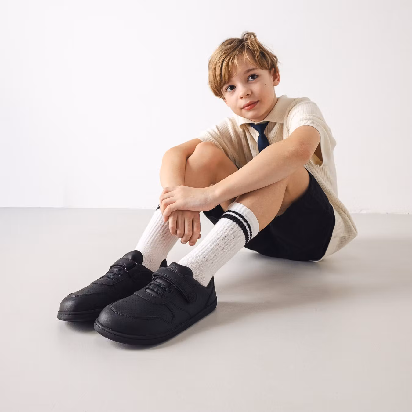 Resultatet är en slitstark och funktionell vardagssko som kombinerar barfotakänsla med en mer klassisk sneakerlook – för barn som rör sig mycket och behöver en sko som håller.