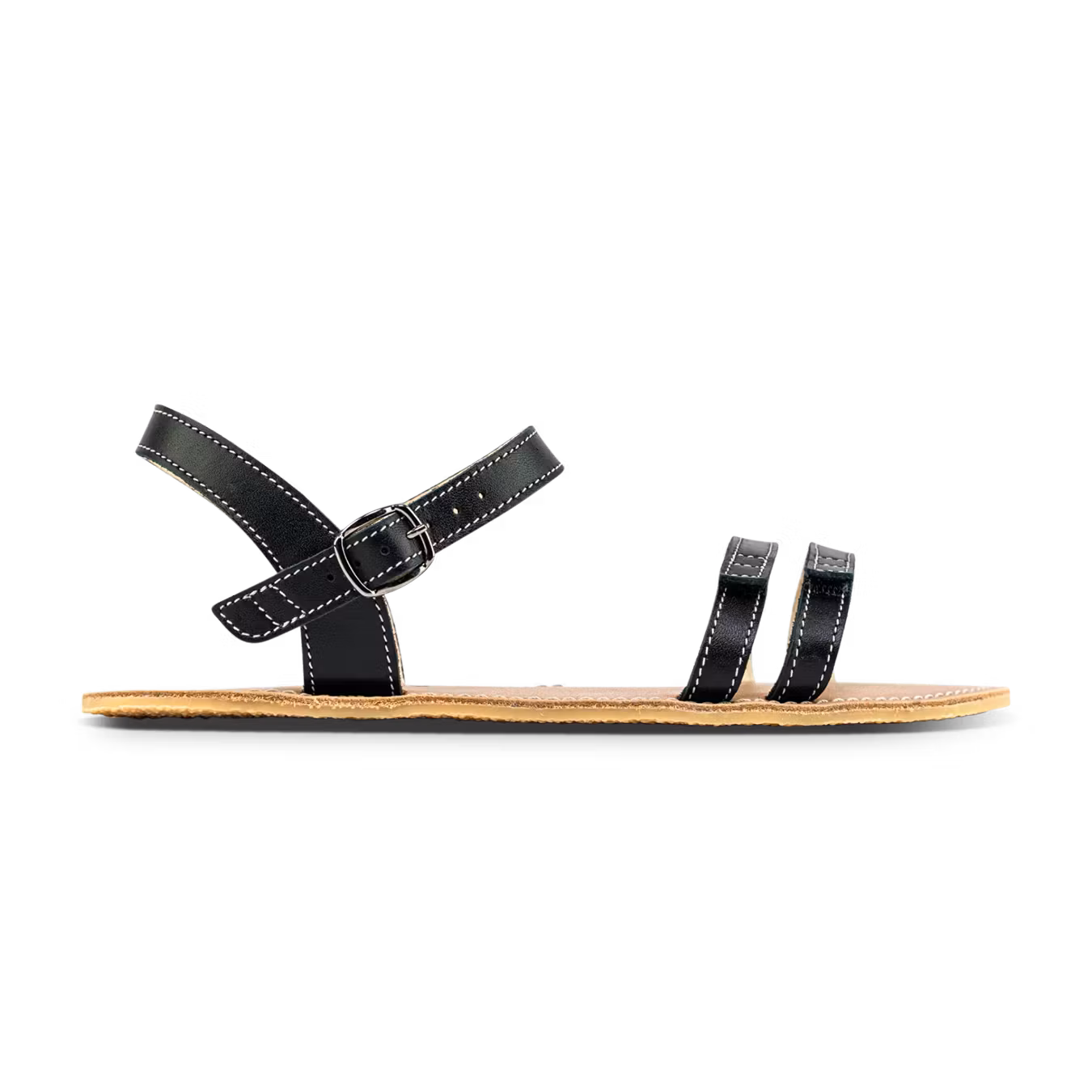 Under foten sitter en tunn och flexibel gummisula på cirka 3–4 mm, designad för att maximera markkontakten och ge en direkt, responsiv känsla i steget. Sulan är helt plan (zero drop), vilket innebär att hälen och framfoten ligger på samma nivå – något som främjar en naturlig hållning och ett mer biomekaniskt korrekt rörelsemönster.