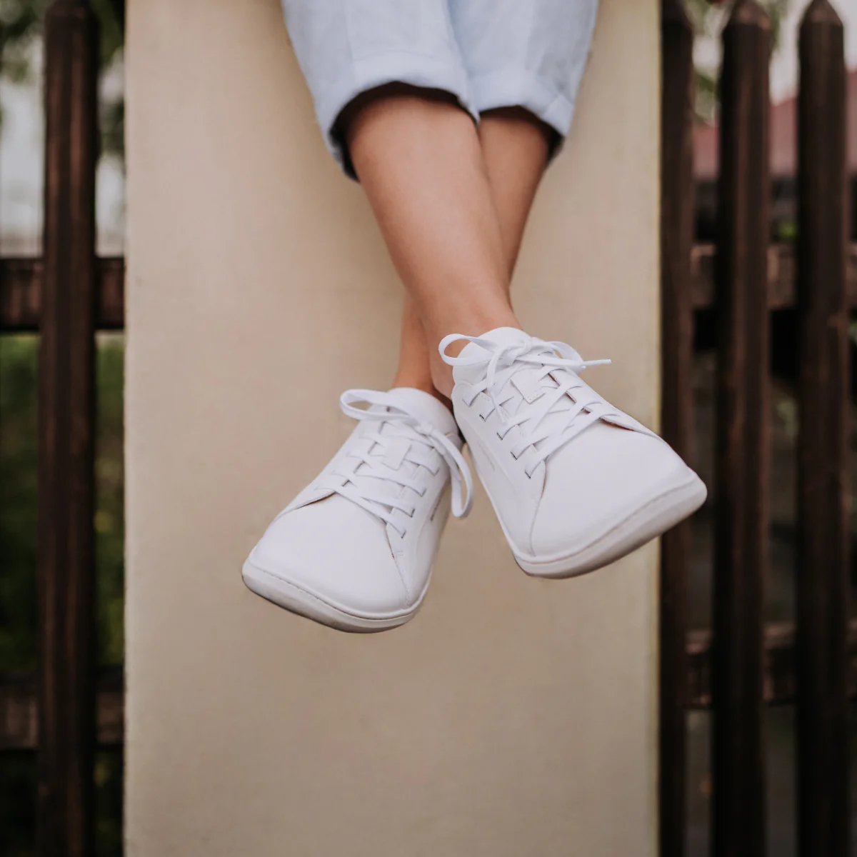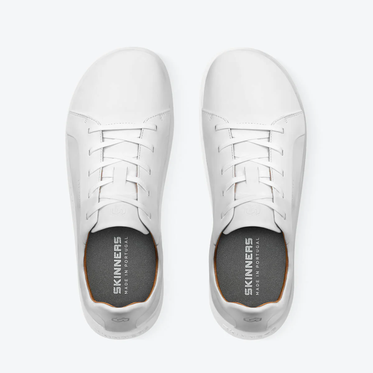 Skinners Moonwalker White är en minimalistisk barfotasko som kombinerar klassisk sneakerdesign med naturlig rörelse och hög komfort. Modellen är utvecklad för vardag, arbete och resor – där du vill ha en sko som ser stilren ut men samtidigt låter foten arbeta fritt.