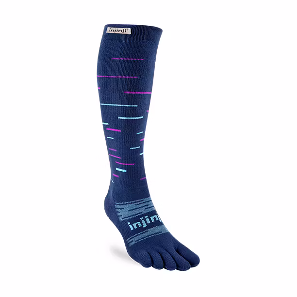 Injinji Snow Over the Calf är en hög tåstrumpa i unisex-modell utvecklad för vinterlöpning och vintersport där värme, komfort och skydd mot skavsår är avgörande. Den höga modellen går upp under knät och ger extra skydd mot kyla samtidigt som den sitter stabilt under aktivitet. Tack vare Injinjis unika tådesign separeras varje tå, vilket minskar hud-mot-hud-friktion och effektivt förebygger blåsor.